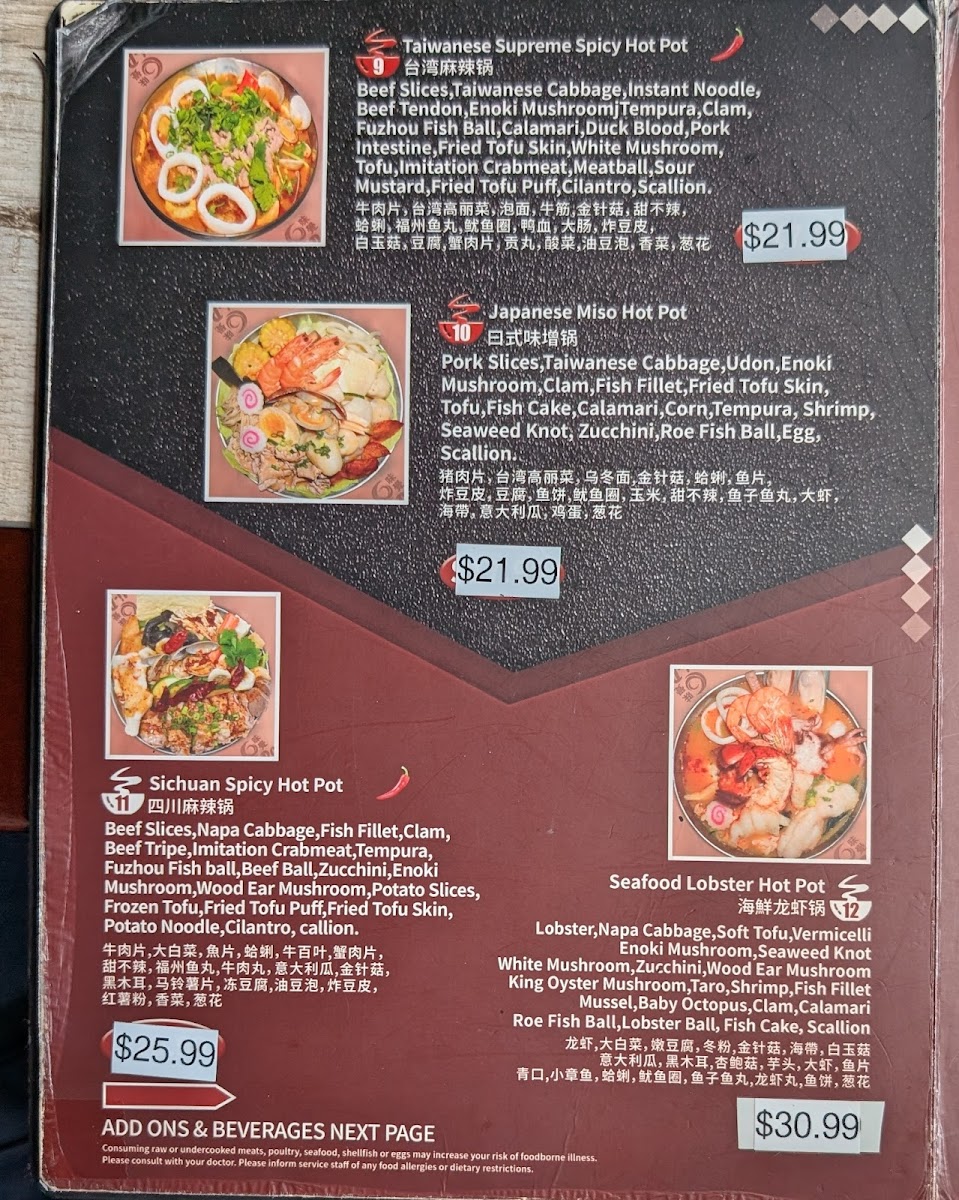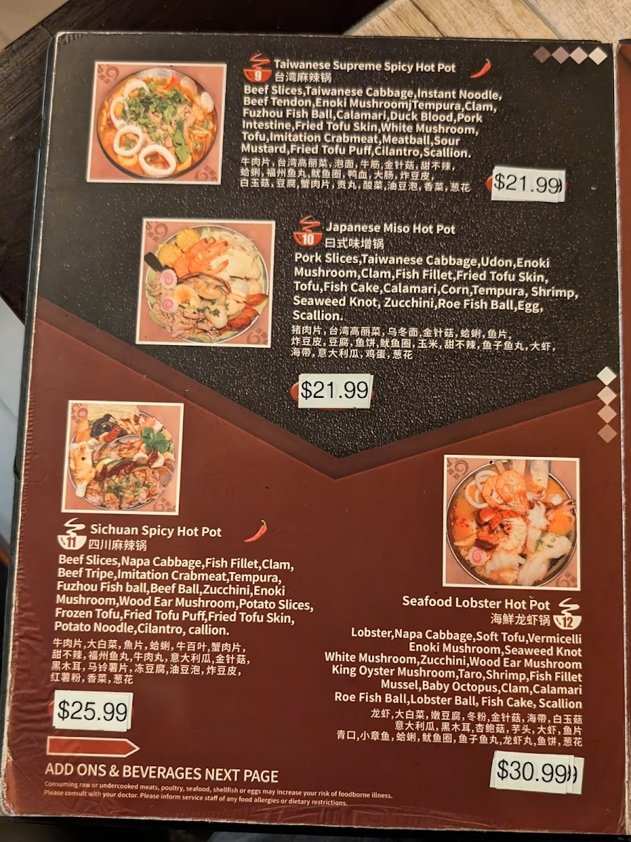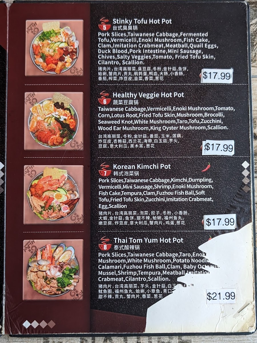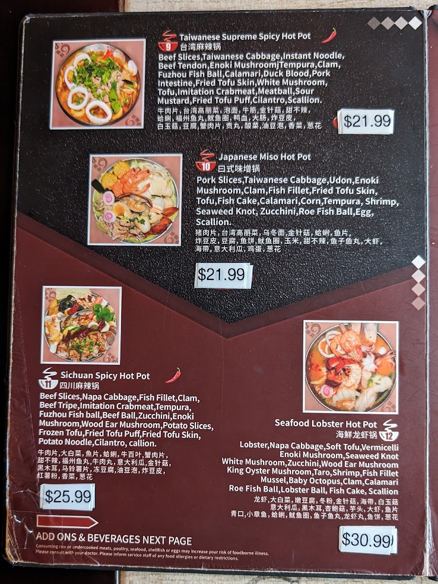 Looking for a cozy spot to enjoy a delicious meal in Miami? The Hi Pot Miami Menu has everything you need to satisfy your cravings. Whether you're in the mood for savory hot pots, fresh ingredients, or flavorful broths, Hi Pot offers a unique dining experience with a wide range of choices. From the moment you sit down, you'll be greeted with a variety of meats, vegetables, and spices to customize your own perfect hot pot creation. With its inviting atmosphere, it’s the ideal place to gather with friends and family to share a satisfying meal. Don’t miss out on their must-try specialties, and enjoy the experience of cooking your meal right at the table!